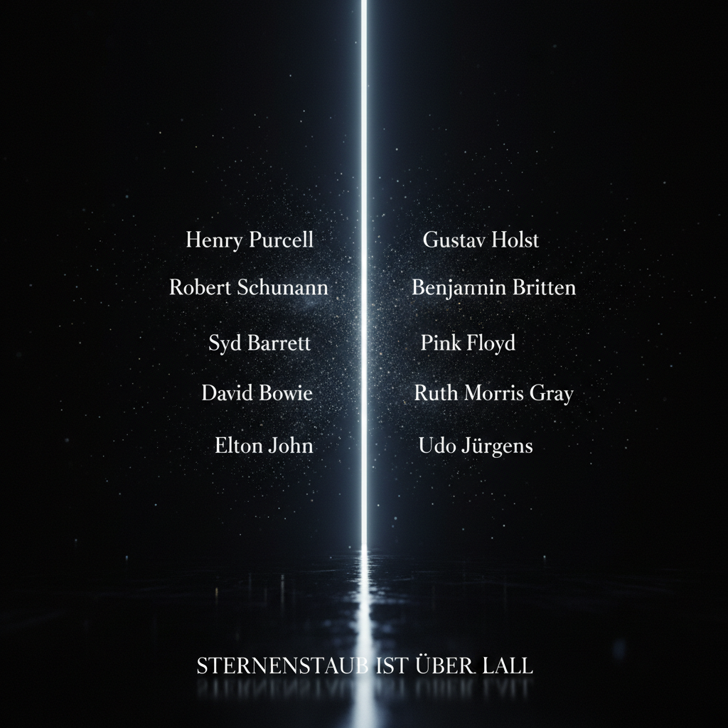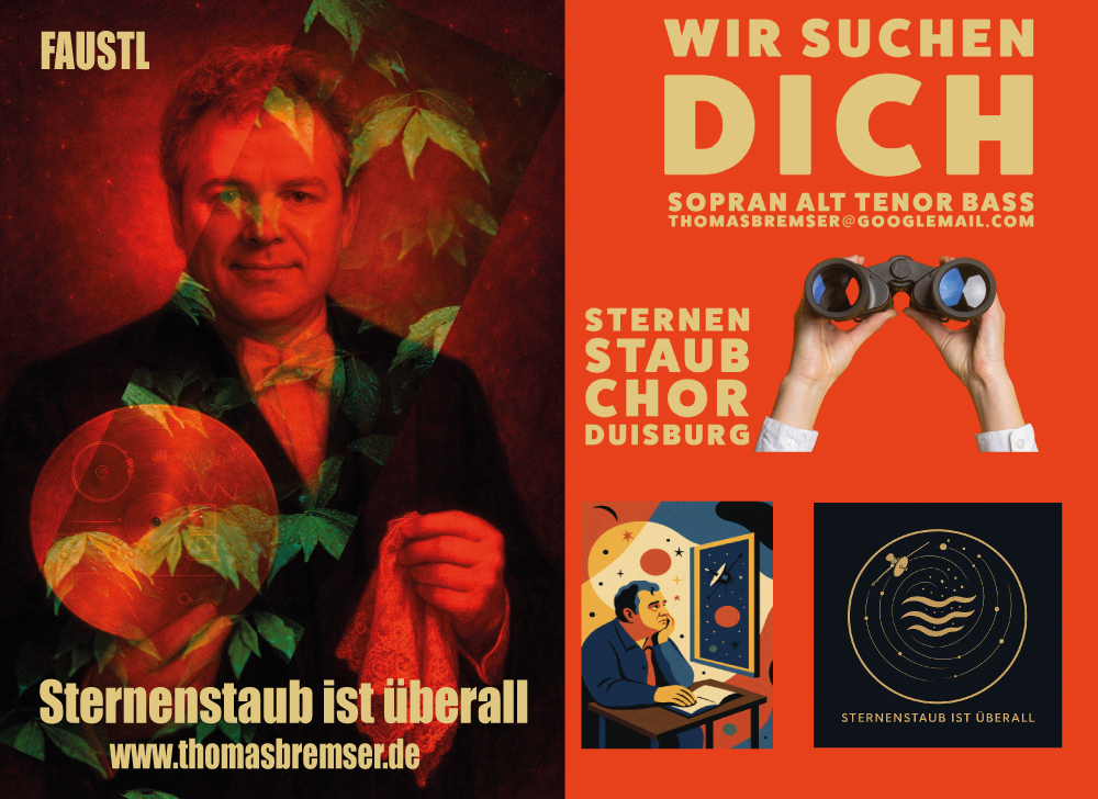 Im Zentrum steht der Sternenstaubchor unter der Leitung von Thomas Bremser – ein generationsübergreifender Chor aus dem Ruhrgebiet – eingebettet in eine szenische Komposition, die Alte Musik, zeitgenössische Klänge, Pop-Fragmente und eigene Werke miteinander verbindet.