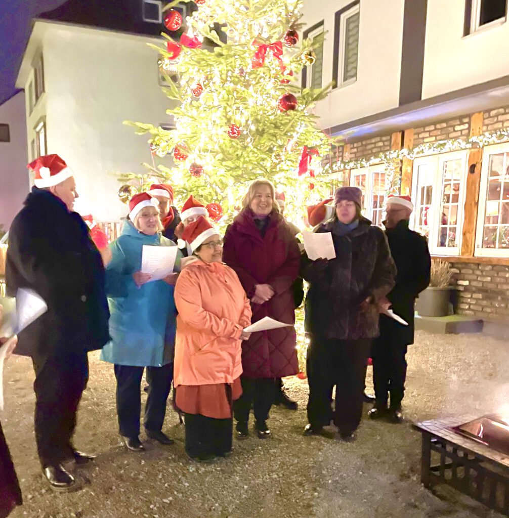 Weihnachtliches Outdoor-Chorsingen mit Bärbel Bas vor dem Coupé 2000 Duisburg